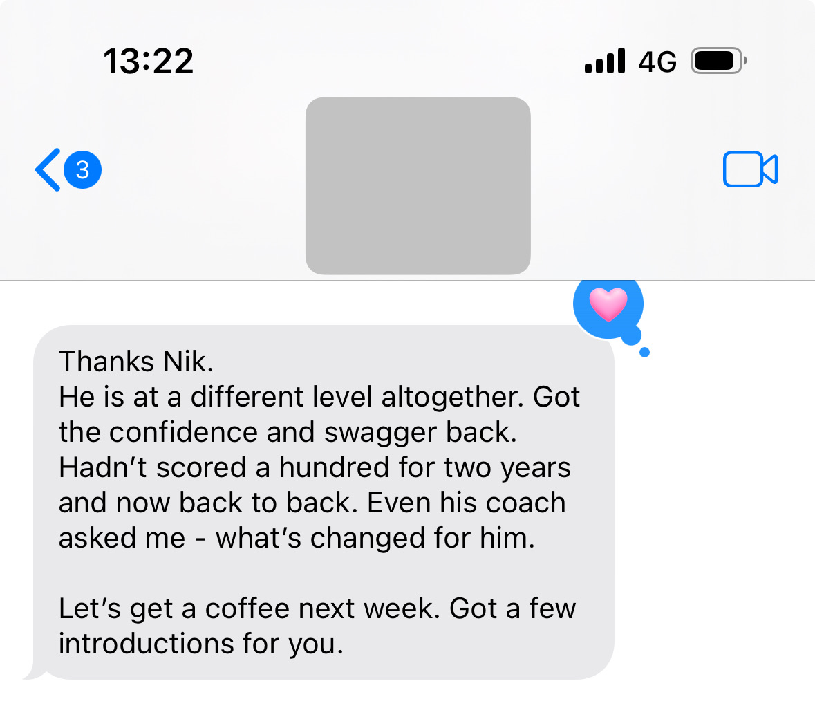 A cricket-specific mental performance program built to help you make better decisions, score more runs, take more wickets, and execute under pressure consistently. Results from day-1.