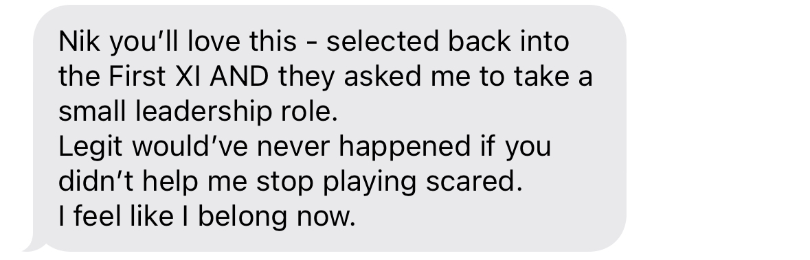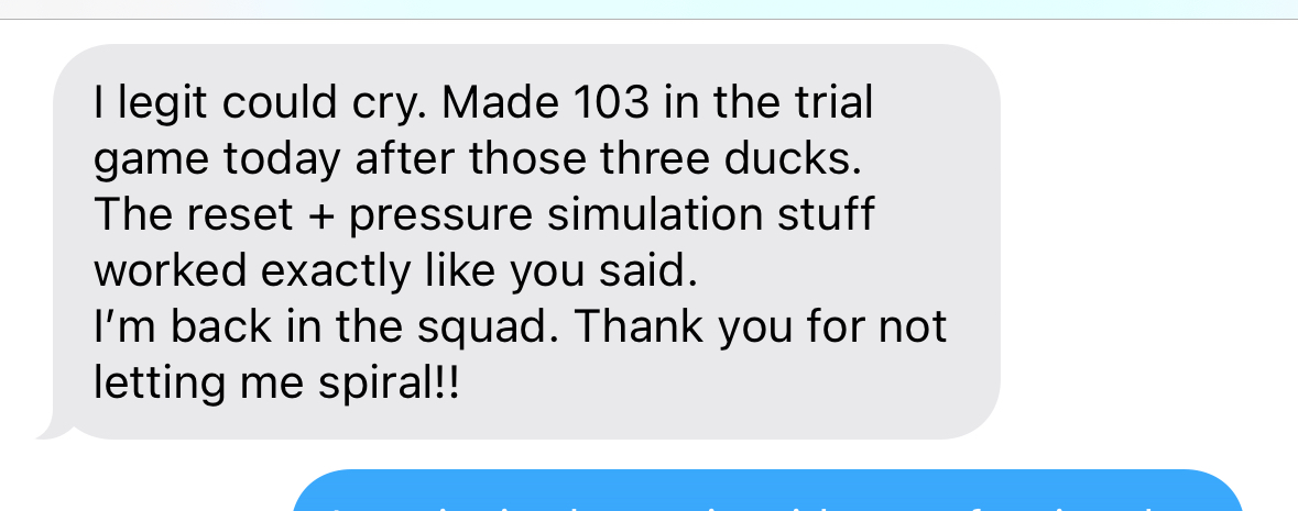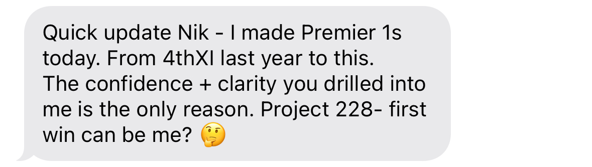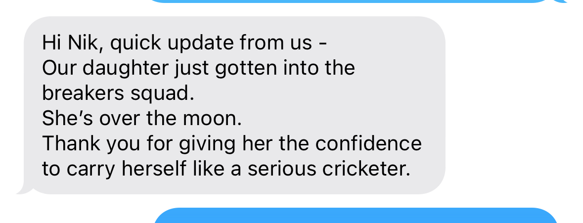 Cricketers I have worked with have trained their mental game inside Project228™ for 7+ years, and are now playing state, franchise or international cricket.
